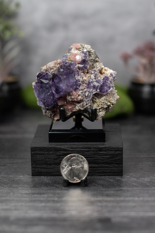 Wuzhou Fluorite & Rhodochrosite on Quartz