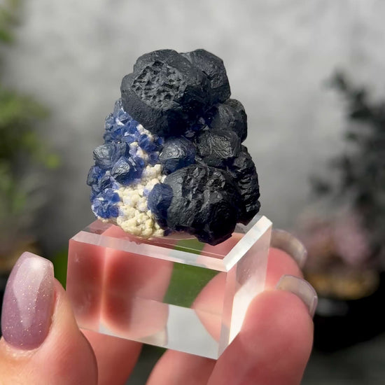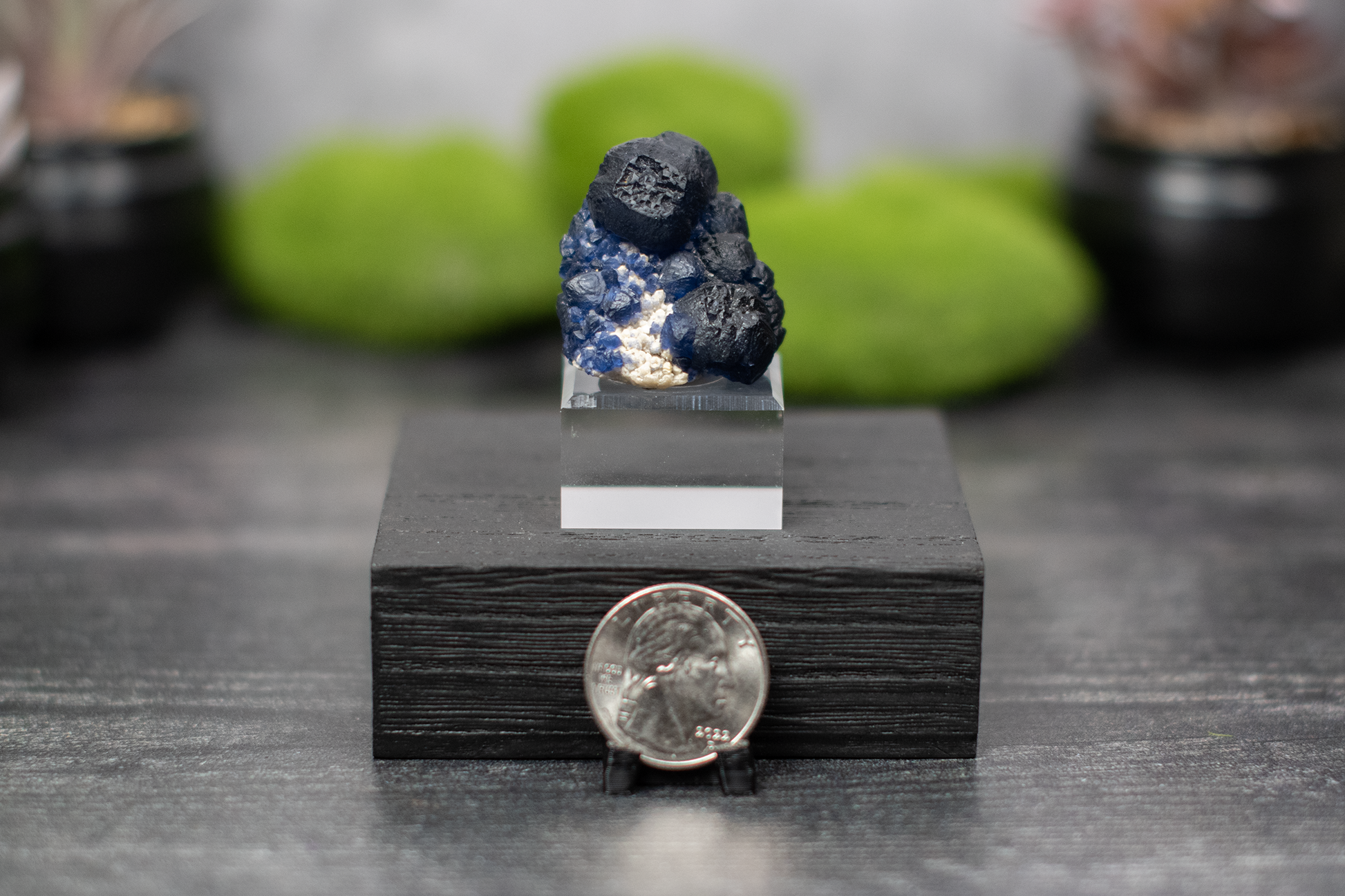 A perfect blueberry fluorite on quartz.. complete formations all around!
