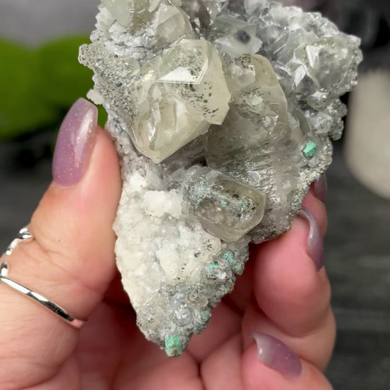 A new find from Hunan.. awesome combo! Pyrite included deep within the calcite gives these an otherworldly sparkle.