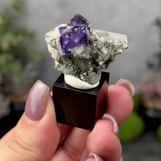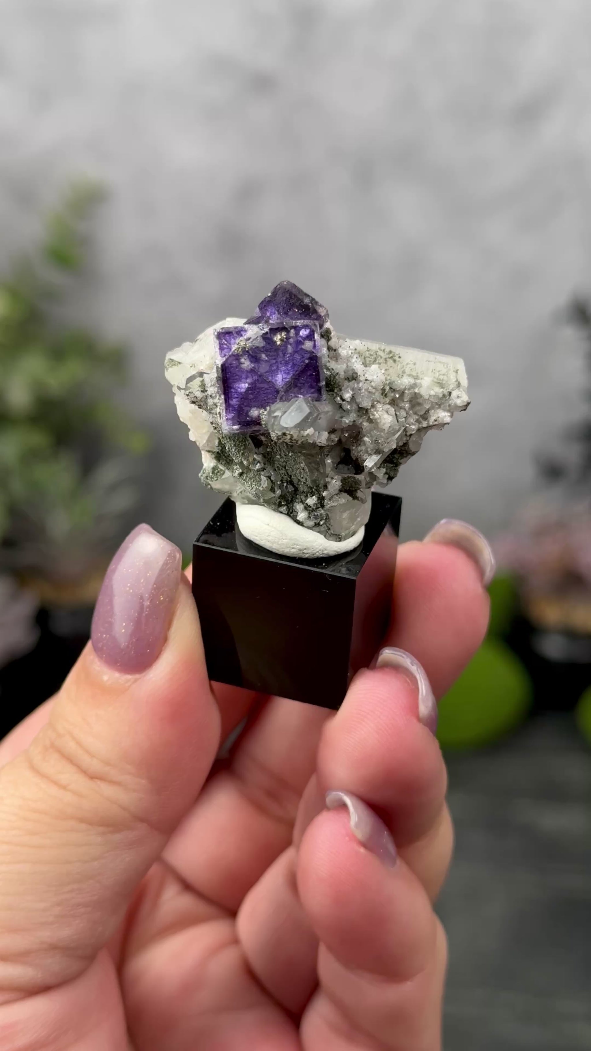 Nicely zoned purple fluorite, with pyrite inclusions, on chlorite, pyrite and mica dusted quartz!