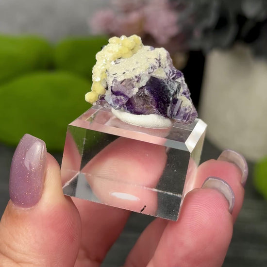 Fluorite and botryoidal yellow mica.. a nice thumbnail!