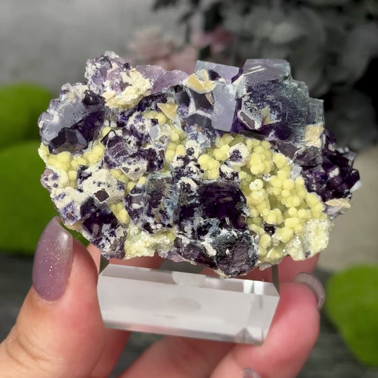 This piece is amazing.. colorful and lustrous fluorite on botryoidal yellow mica.. some funky formations and stepped corners.. eye catcher!!